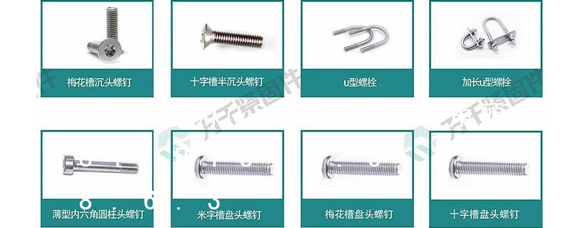 1.機(jī)螺釘 2.自攻螺釘 3.鉆尾螺釘 4.墻板釘 5.纖維板釘 6.木螺釘7.六角木螺釘 8.不脫出螺釘 9.組合螺釘 10.微型螺釘 11.家具螺釘 12.電子螺釘 13.鏈帶螺釘頭型 :1.六角頭(hexagon head)2.六角頭法蘭面(hexagon head with flange)3.方頭(square head)4.T形頭T head (hammer head5.